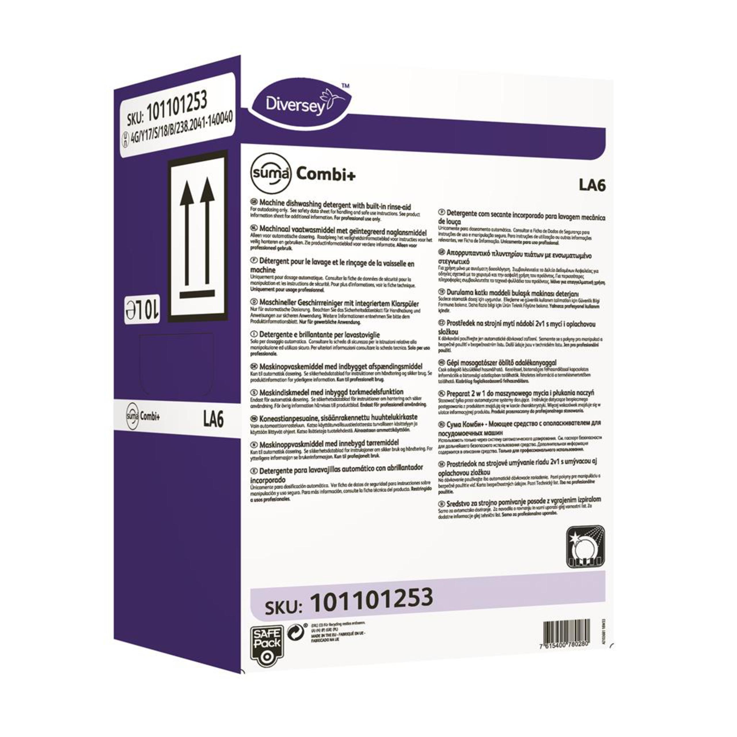 Vloeibaar vaatwasmiddel en naspoelmiddel gecombineerd in één product. Suma Combi is gebaseerd op de nieuwste technologie voor het combineren van een geconcentreerd vloeibaar machinaal vaatwasmiddel en naspoelmiddel in één. Suma Combi+SP LA6 is speciaal geformuleerd om vuil te verwijderen in zacht tot middelhard water.